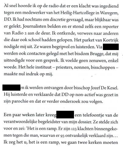 Beste, herinner jij je nog dat telefoontje, van wie het kan gekomen zijn (Opvangpunt Brugge?) en als je het nog kan nagaan, wanneer dit geweest is. En ook wanneer je er over gesproken hebt met Jan Puype, of was hij er bij aanwezig? Want het natuurlijk niet niks, 123 klachten die bij de kerk zijn binnengekomen en 93 ontvankelijk verklaard. In de Humo wordt door Jan Puype verplaard dat er 90 slachtoffers van D.D. “door de kerk erkend zijn”. Dat ben ik natuurlijk meteen nagegaan. Er zijn 7 meldingen geweest bij de kerk over seksueel misbruik door DD waarvan 5 erkend met dading (2 door het de arbitragecommissie, (dwz voor eind 2012 konden hier meldingen gebeuren) en 3 door een Opvangpunt van de kerk. De geciteerde cijfers geven evenwel het 18-voudige aan. Vandaar m’n vraag wie en wanneer deze cijfers aan jou genoemd heeft en wanneer Jan Puype er kennis van genomen heeft? Jan Puype besluit in z’n Epiloog op blz 143 dat in België er meer dan duizend negenhonderdvijftig erkende slachtoffers van misbruik in de kerk zijn. Dwz, erkend en tegemoet gekomen door de kerk, het instituut waarbinnen het misbruik heeft plaatsgevonden. De bedragen zijn, mede door Overleggroep slachtoffers-kerk in 2024 geïndexeerd met 33% en sinds kort is er als ‘overbrugging’ 3.000€ vrijgemaakt voor psychische hulp. Dwz dat er bv van m’n bezoek aan de psychiater, kostprijs 98,01€, na terugbetaling door het RIZIV, 76,36€ er door mij 21, 65€ als remgeld betaald wordt, en dat ik op die manier 139 sessies kostenloos kan volgen. Hopelijk is het parlement dan klaar met het advies om een herstelfonds op te richten voor psychische hulp, voor alle slachtoffers van seksueel misbruik. Maar goed dat er een kerk bestaat die voor verjaarde feiten haar verantwoordelijkheden opneemt, volledig conform aan wat de parlementaire commissie in 2011 beslist heeft, en dat de kerk zich al sinds de onderzoekscommissie van 2024 al toegezegd heeft om alle parlementaire besluiten nauwgezet toe te passen. Maar dat is een helder boodschap die allicht spijtig genoeg niet zal te horen zijn in Brief aan de paus. Groetjes, en dank voor enige info en verduidelijking van het statement van Jan Puype in de Humo/DM en vooral in z’n boek waarin jij als bron wordt aangehaald. Jan